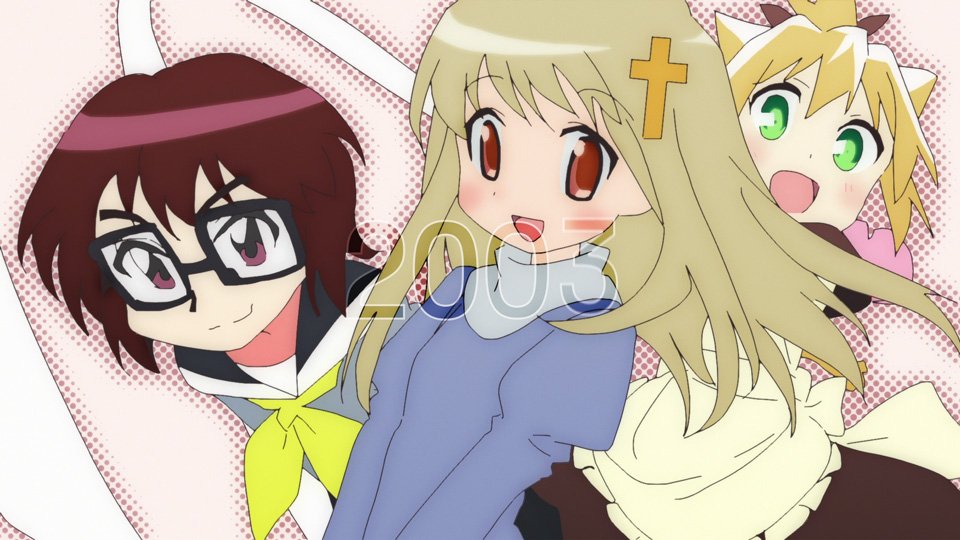 ここから画面中央に年が表示され、カウントアップしていくとともにその年に連載開始した作品のキャラクターが登場する。ラクターの表がある。
